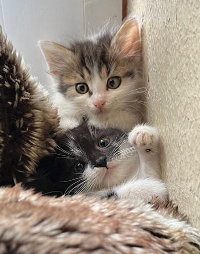 Schwesterchen "Sissy", schwarz-weiß, suchen ihre eigene Familie. Ebenso