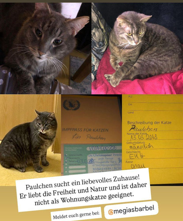 Kater Paulchen ist 8 Jahre, geimpft, kastriert und sucht ein neues